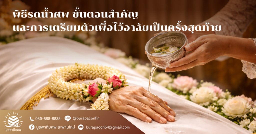 พิธีรดน้ำศพถือเป็นขั้นตอนแรกสุดของการประกอบพิธีกรรมทางศาสนาเมื่อมีผู้เสียชีวิต ในทางประเพณีถือเป็นการชำระล้างร่างกายให้บริสุทธิ์ก่อนการเดินทางไปสู่สัมปรายภพ